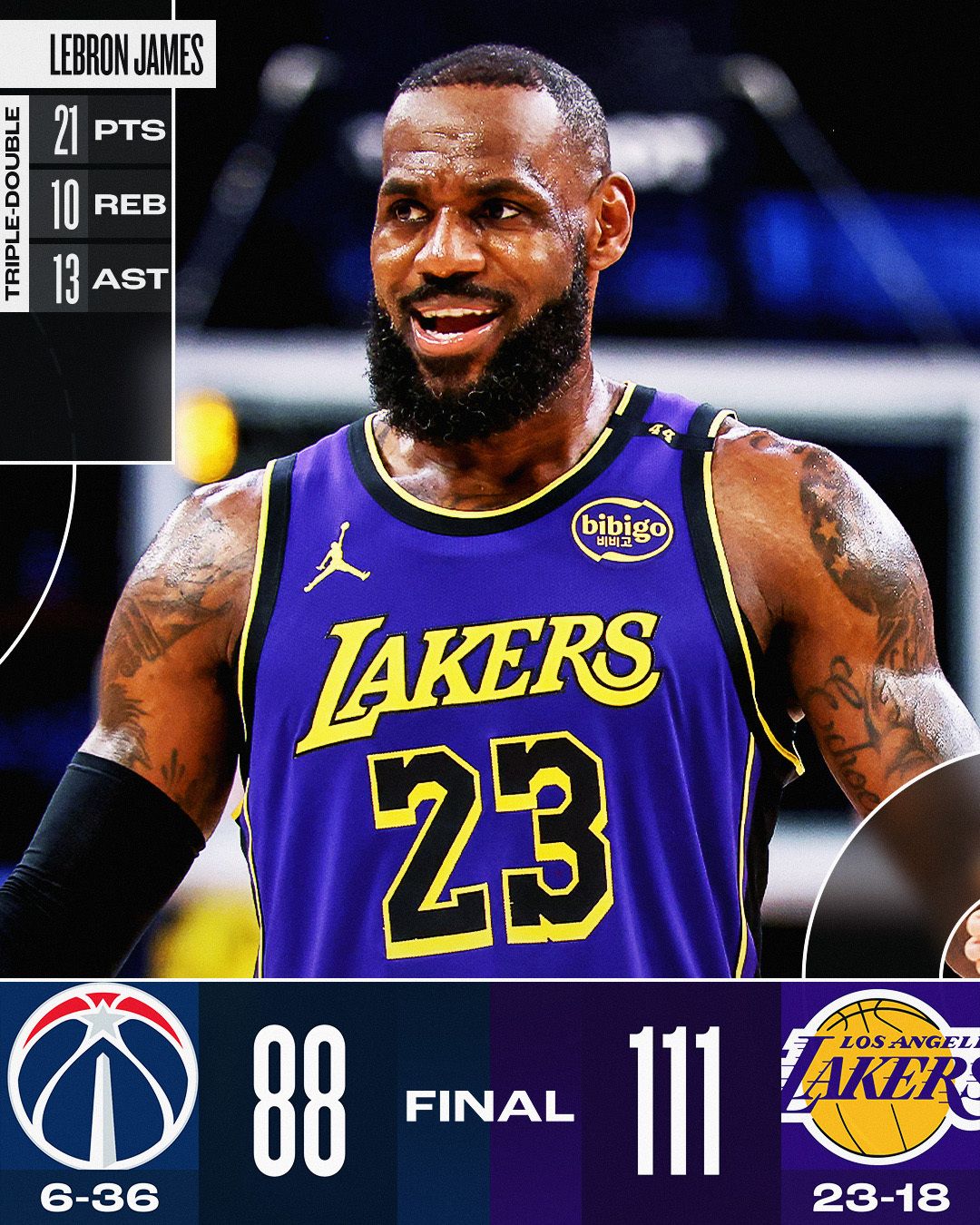 LeBron James powered the Los Angeles Lakers win with his 9th triple-double this season (121st of his career)! He joins Karl Malone as the only players in NBA history to record a triple-double at age 40 years or older.