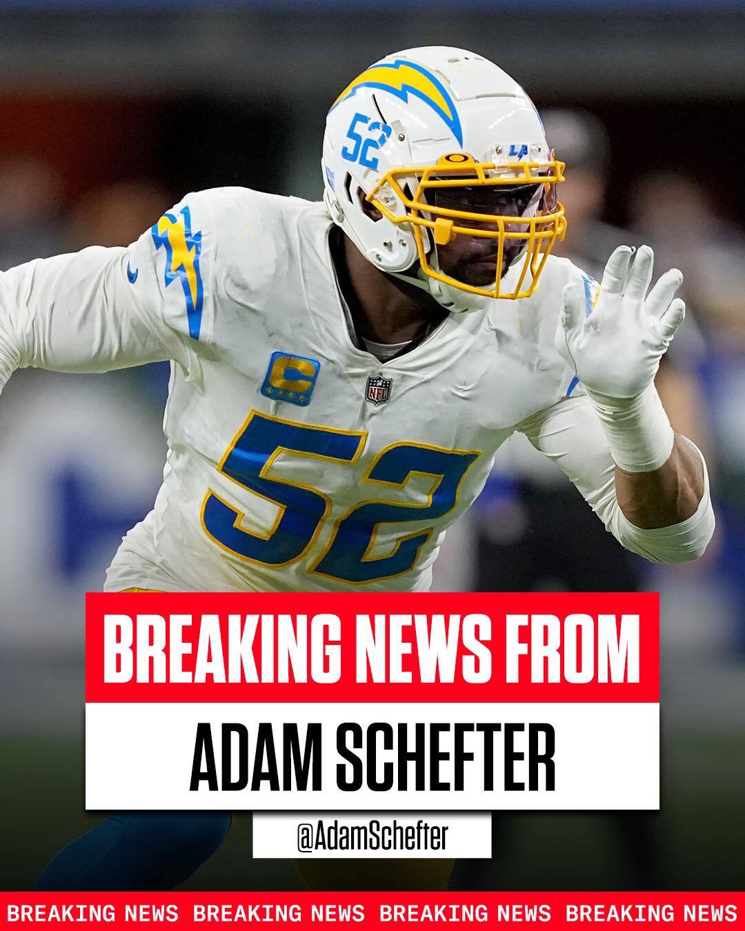 Nine-time Pro-Bowl LB Khalil Mack, who said after the Chargers’ postseason loss to the Texans that he needed to take some time to mull his future, will indeed play in the 2025 season, per source. Mack’s contract is up and he is scheduled to be an unrestricted free agent.