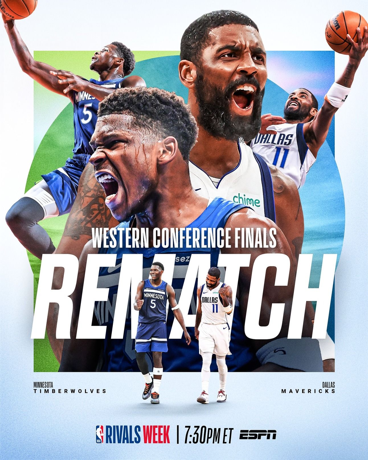 Anthony Edwards (32 PTS last game) and the Minnesota Timberwolves battle Kyrie Irving (33 PTS last game) and the Dallas Mavericks tonight at 7:30pm/et on ESPN!