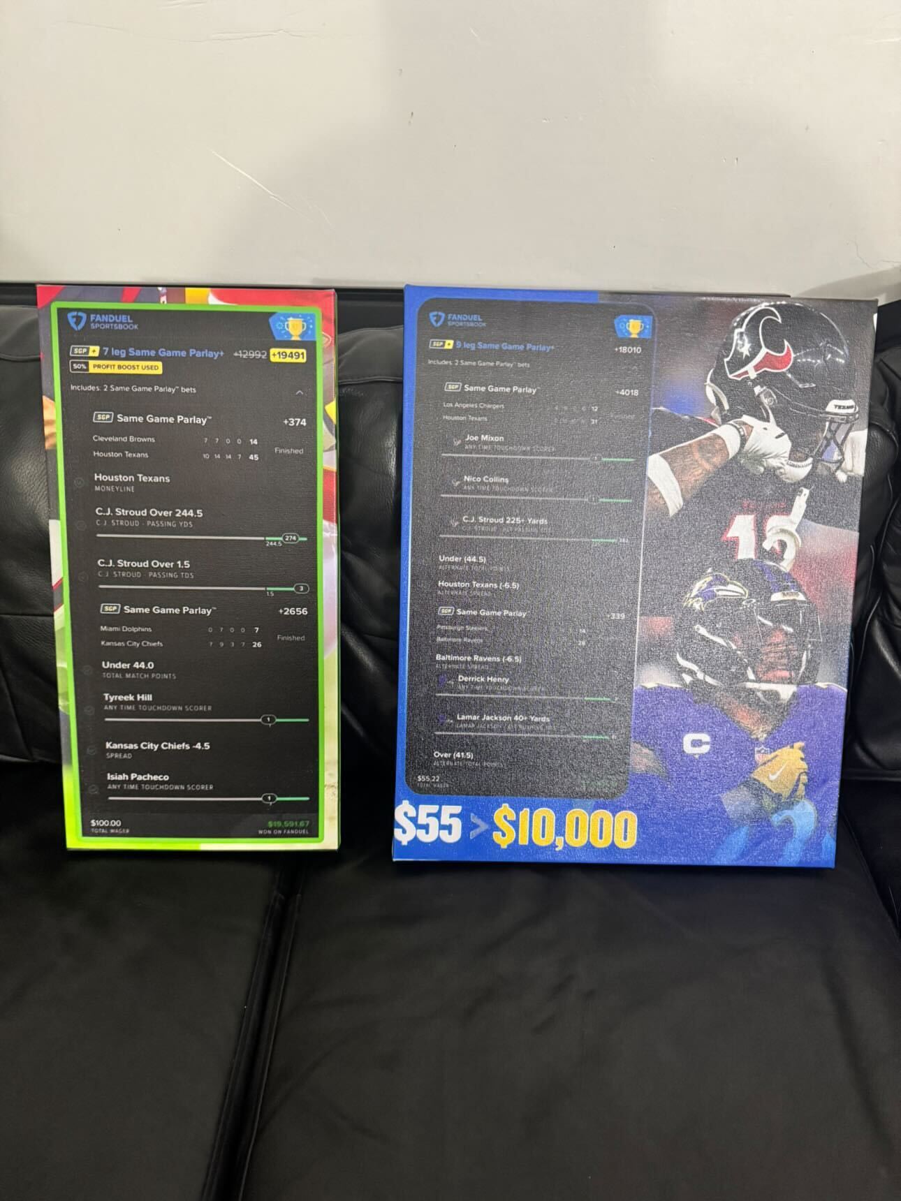 THIS BETTOR REALLY FRAMED HIS BEST WINS OF THE NFL REGULAR SEASON... $55 to $10K. $100 to $19K. What a year