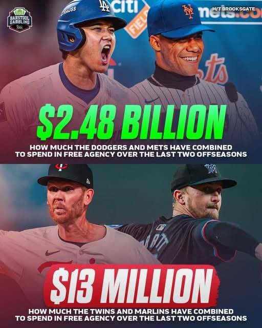 The Dodgers and Mets have combined to spend approximately 190x what the Twins and Marlins have over the past two offseasons